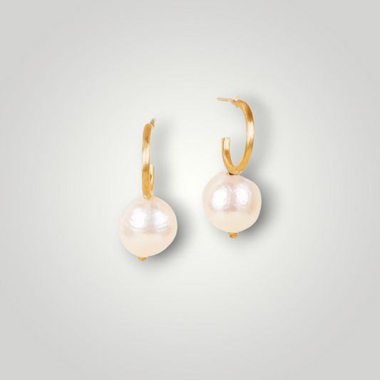 Ophelia Gold Pearl Hoops - 18ct Gold Plated Freshwater Pearls
