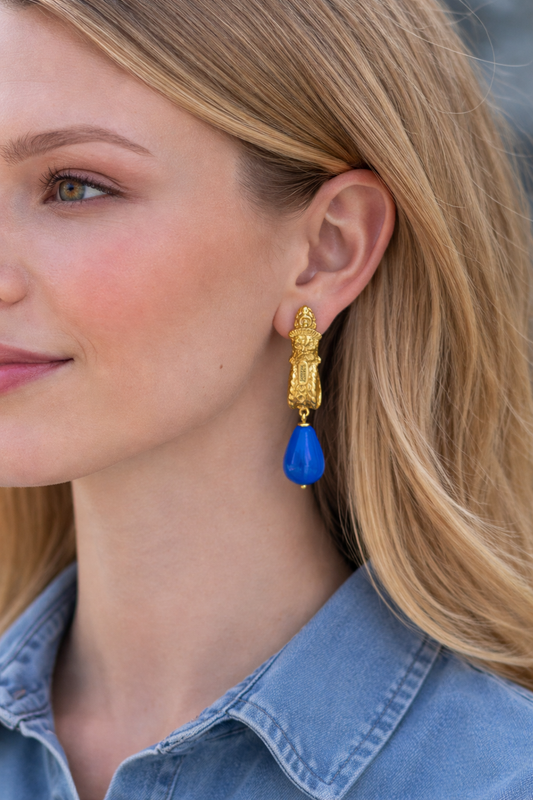 Blue AgateTeardrop Statement Earrings - 24ct Gold Plated