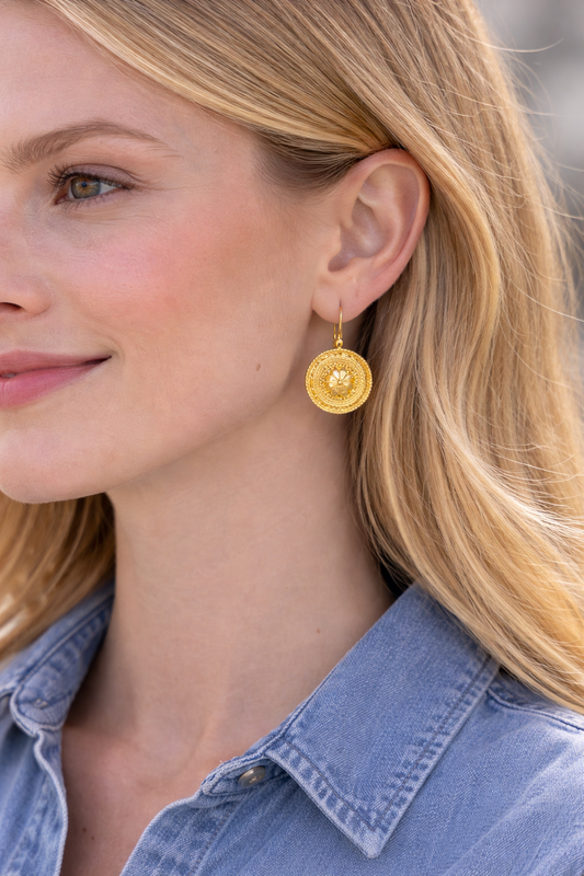 Medallion Drop Earrings - 24ct Gold Plated Brass