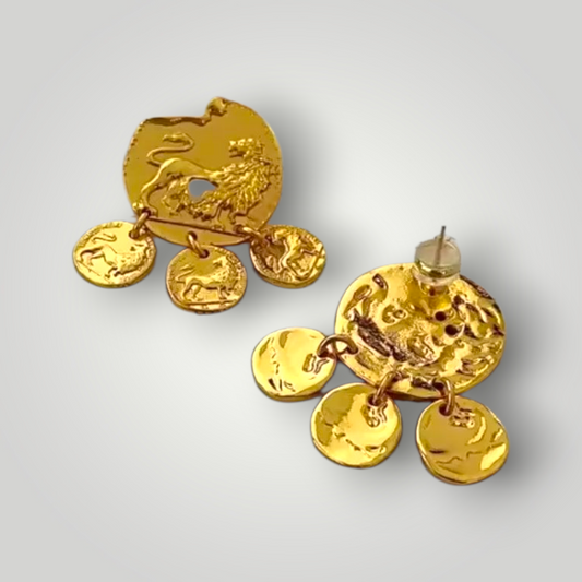 Mythos Lion Coin Drop Earrings - 18ct Gold Plated