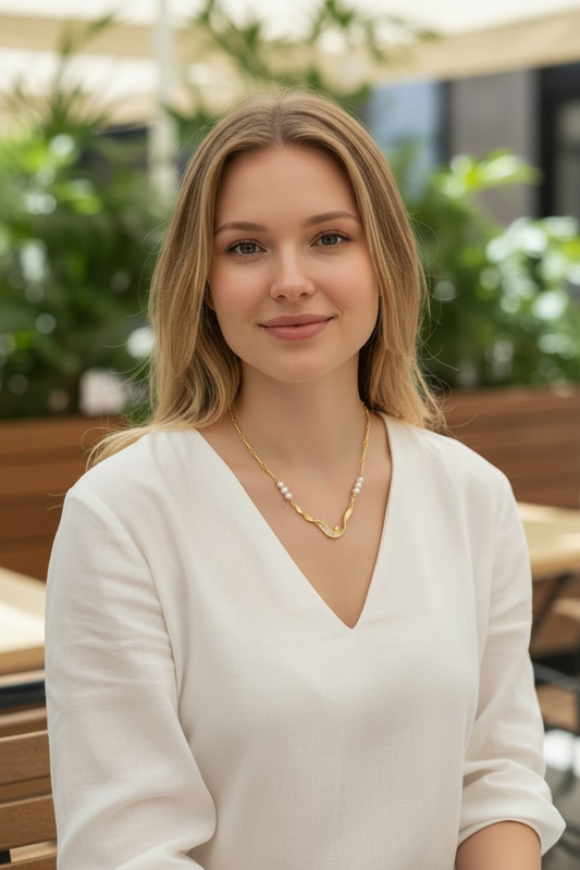 Vintage Pearl & Gold Wave Necklace